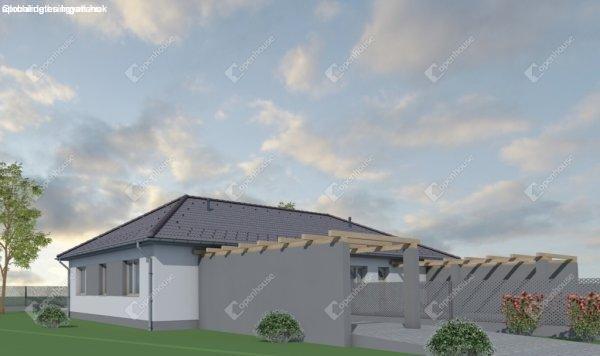 terasszal, + 19.78 m2 kocsibeállóval. Nappali-konyha-étkező mellett három