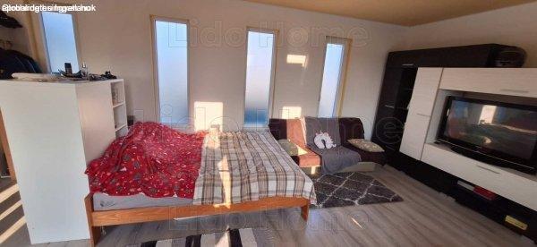 műanyag nyílászárók -villanybojler a melegvíznek -fűtés: infrapanellel -45 m2-es