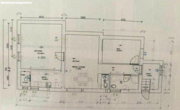 amerikai konyhás nappali étkezővel, kamra, 2 hálószoba (melyből a nagyobbik